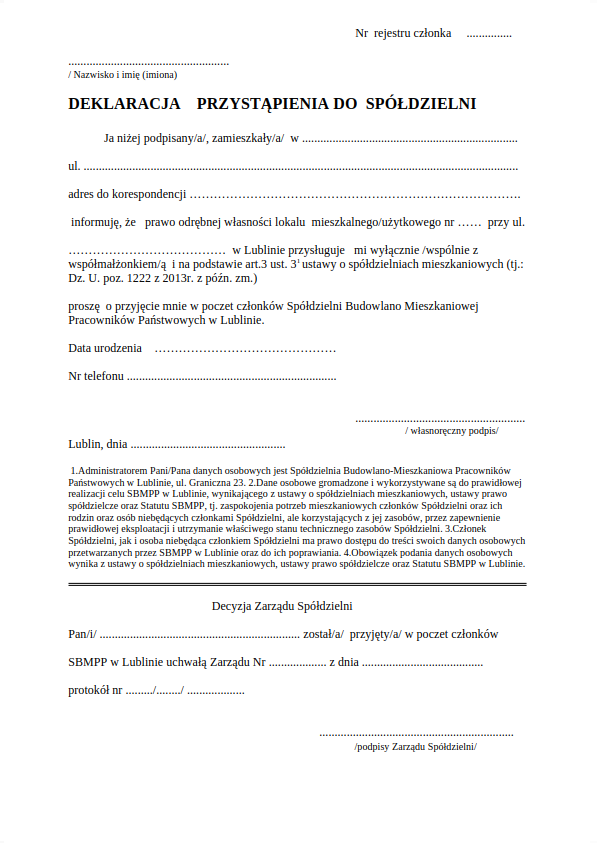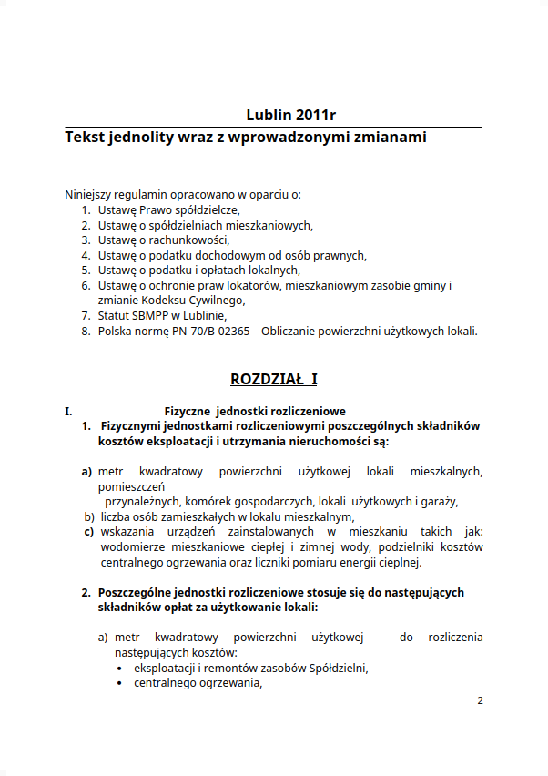 Statut Spółdzielni Budowlano-Mieszkaniowej Pracowników Państwowych w Lublinie, przyjęty przez Zarząd SBMPP w 2013 roku.